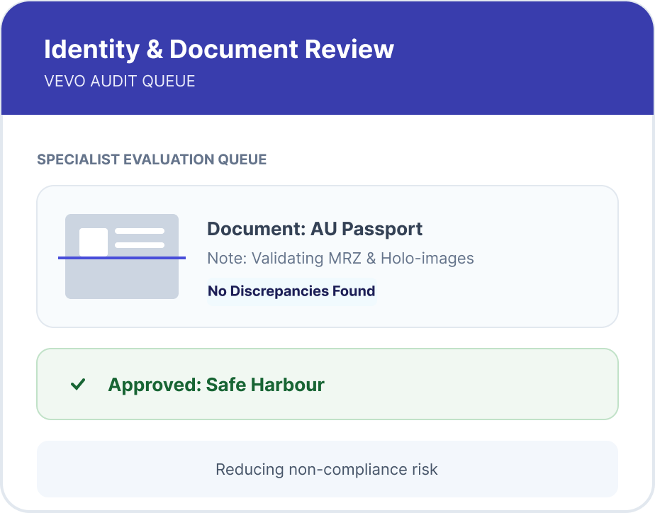 WorkRight assesses identity documentation, confirms visa status and work restrictions through VEVO checks, and helps ensure decisions align with regulatory expectations.