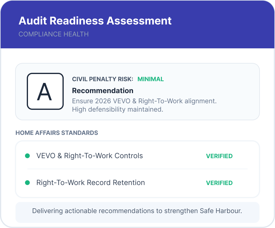 Built for organisations that must confirm workforce eligibility while navigating visa conditions, labour-hire obligations, and Fair Work expectations.