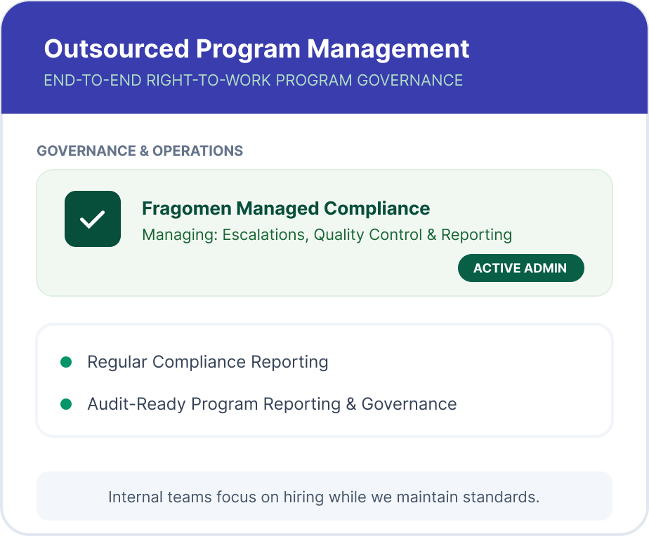 As regulatory scrutiny expands across contractors and labour-hire arrangements, structured verification processes help ensure workforce eligibility is consistently confirmed across extended workforces.