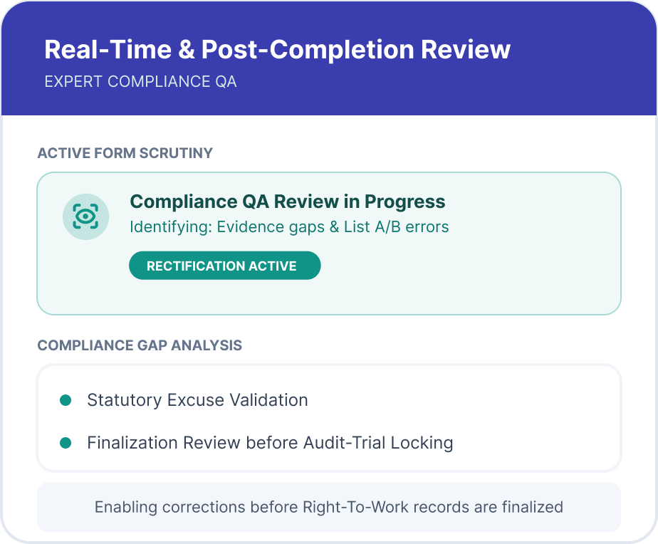 Comprehensive reviews of historical Right-to-Work records identify documentation gaps, inconsistent verification practices, and missing compliance controls.